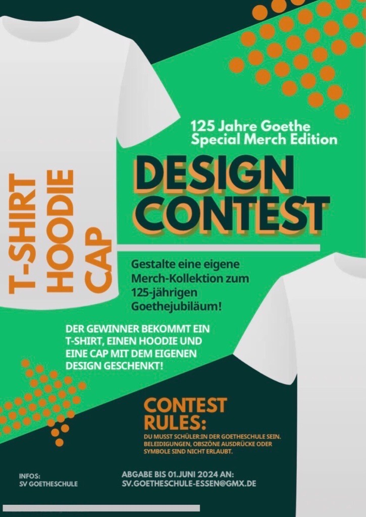 Am Schuljubiläum läuft die gesamte Schule für den guten Zweck. Die Strecke verläuft um das Schulgebäude herum. Schulleitung, LehrerInnen, SchülerInnen und Schulpersonal arbeiten als Team zusammen und versuchen jeweils in 30 Minuten gemeinsam so viele Kilometer wie möglich zu laufen. Der „Goethe“ – Lauf" ist ein Spendenlauf, der von SchülerInnen des Q1 Religionskurses organisiert wird. Das Geld soll den gemeinnützigen Essener Verein „Be strong for kids“ und unser Brasilienprojekt finanziell unterstützen.