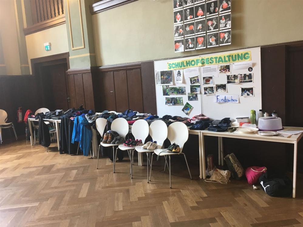 Wir laden herzlich am Mittwoch und Donnerstag (27.06.-28.06.2018) zu unserer Aktion "Fundgrube am Goethe" ein. Unser Hausmeister Herr Möller hat über längere Zeit sehr viele Fundsachen gesammelt, die nun im Bistro an den genannten Tagen ausgelegt werden. Gerne können auch Eltern kommen, um nach Schuhen, Jacken, Schirmen und anderen Dingen zu suchen.