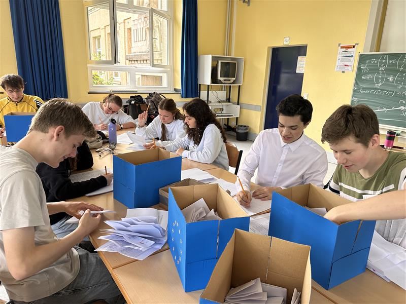 Am vergangenen Mittwoch fand bei uns in der Schule die U16-Europawahl statt. Sie wurde von SV-Schüler*innen organisiert und durchgeführt und von Frau Gwisdalla begleitet. An der Wahl teilgenommen haben 93% der Goetheschüler*innen im Alter von unter 16 Jahren.