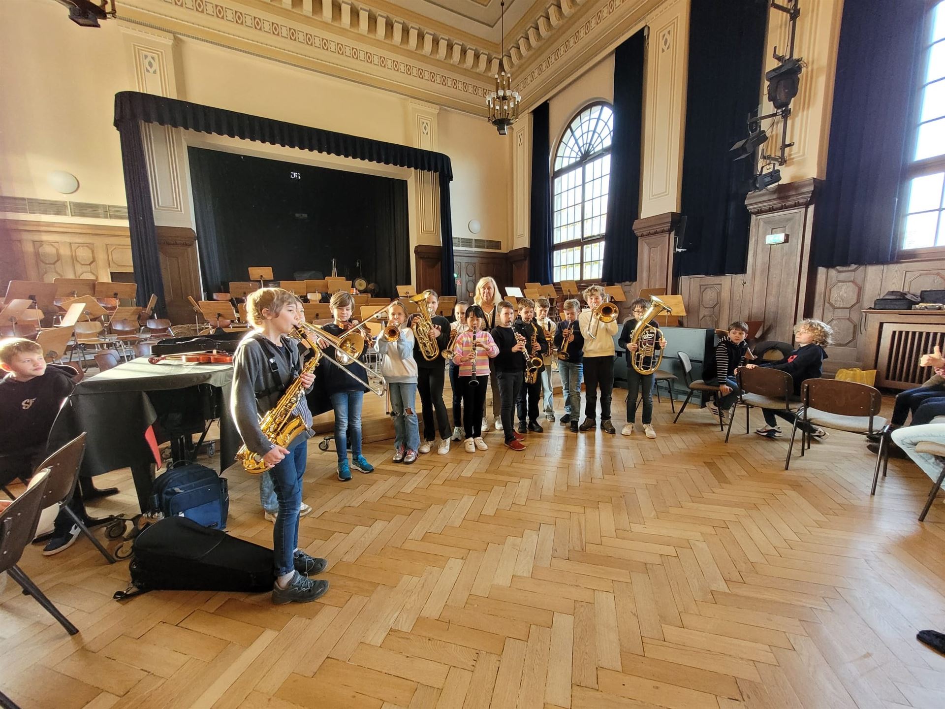 Für Montag, den 23.10.2023, hatte Orchesterleiter Dr. Marcus Schönwitz gemeinsam mit der Leitung der Musikschule Tonart, Sven und Bettina Janning, etwas Besonderes vorbereitet: Unter Leitung und Anleitung erfahrener Instrumentallehrer konnten sich unsere Fünftklässler in der Goetheaula an verschiedenen Instrumenten wie z. B. Geige, Klarinette, Saxophon und Posaune, ausprobieren. Hierbei haben sie unmittelbare und spannende Erfahrungen an den von den Dozenten mitgebrachten Instrumenten gemacht und dabei vielleicht sogar auch ihr Wunschinstrument für sich oder sogar auch das ein oder andere Talent entdecken können. In jedem Fall haben sich alle Kinder über diese spannenden musikalischen Erlebnisse gefreut!