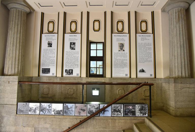 Nach ausführlicher Sichtung der gesammelten Informationen begannen wir mit dem Erstellen von Lebensläufen und entschieden uns, Plakate mit den wichtigsten Informationen und Fotografien zu designen, um diese im Treppenaufgang der Schule auszustellen.