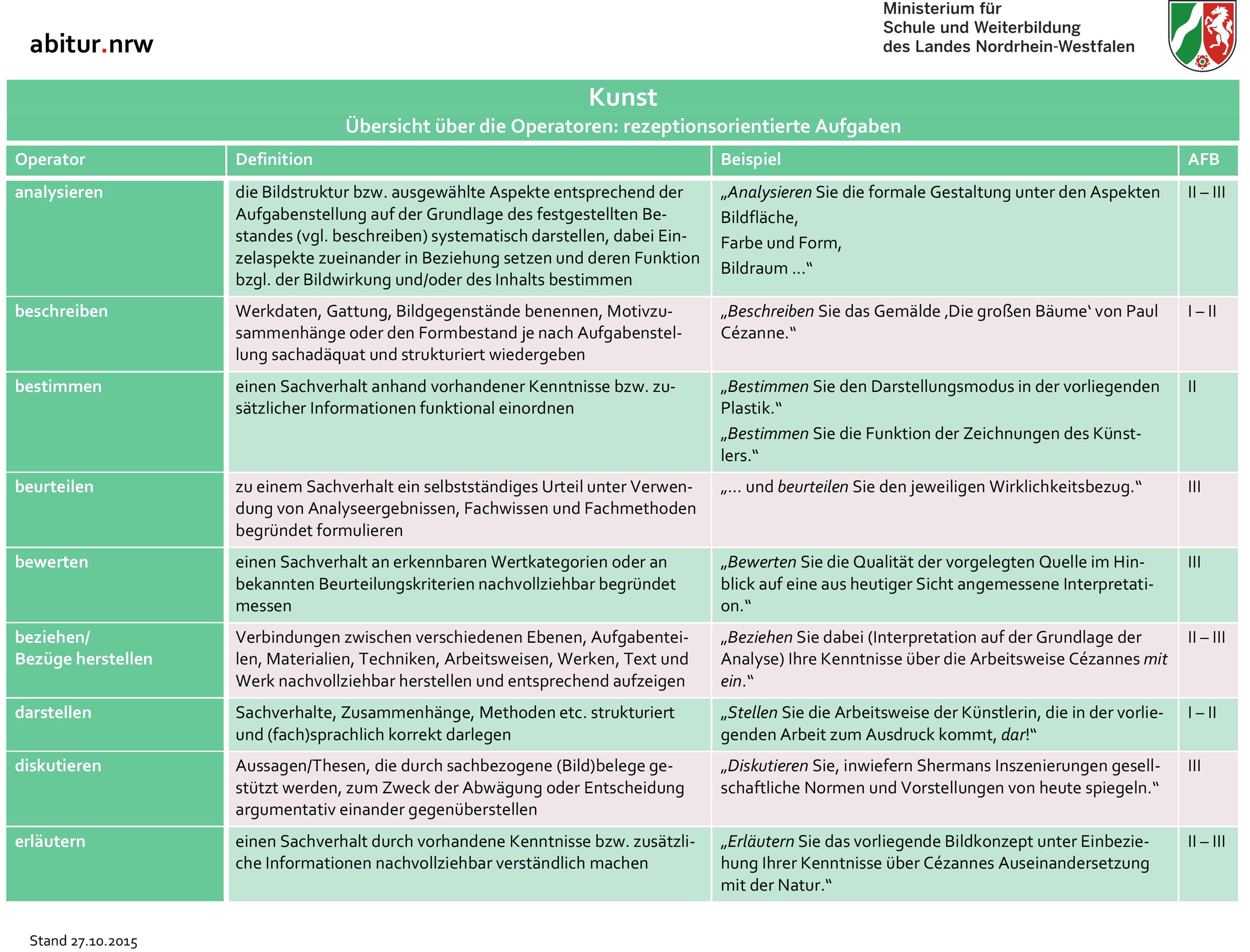 Hier finden Sie das schulinterne Curriculum für das Fach Kunst: