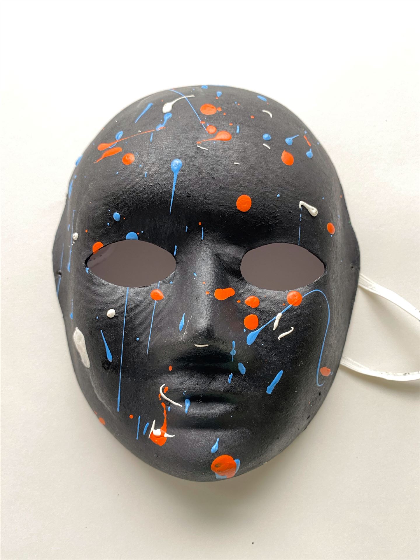 Aus der Bearbeitung der Graffiti Kunst entstand die Idee, sich mit der Anonymität hinter einer Maske auseinanderzusetzen. Die SuS lernten kulturelle Bezugspunkte der Gesichtsmaskierung aus der Kunstgeschichte kennen und übertrugen einzelne Formen und Funktionen auf die eigene Gestaltung.