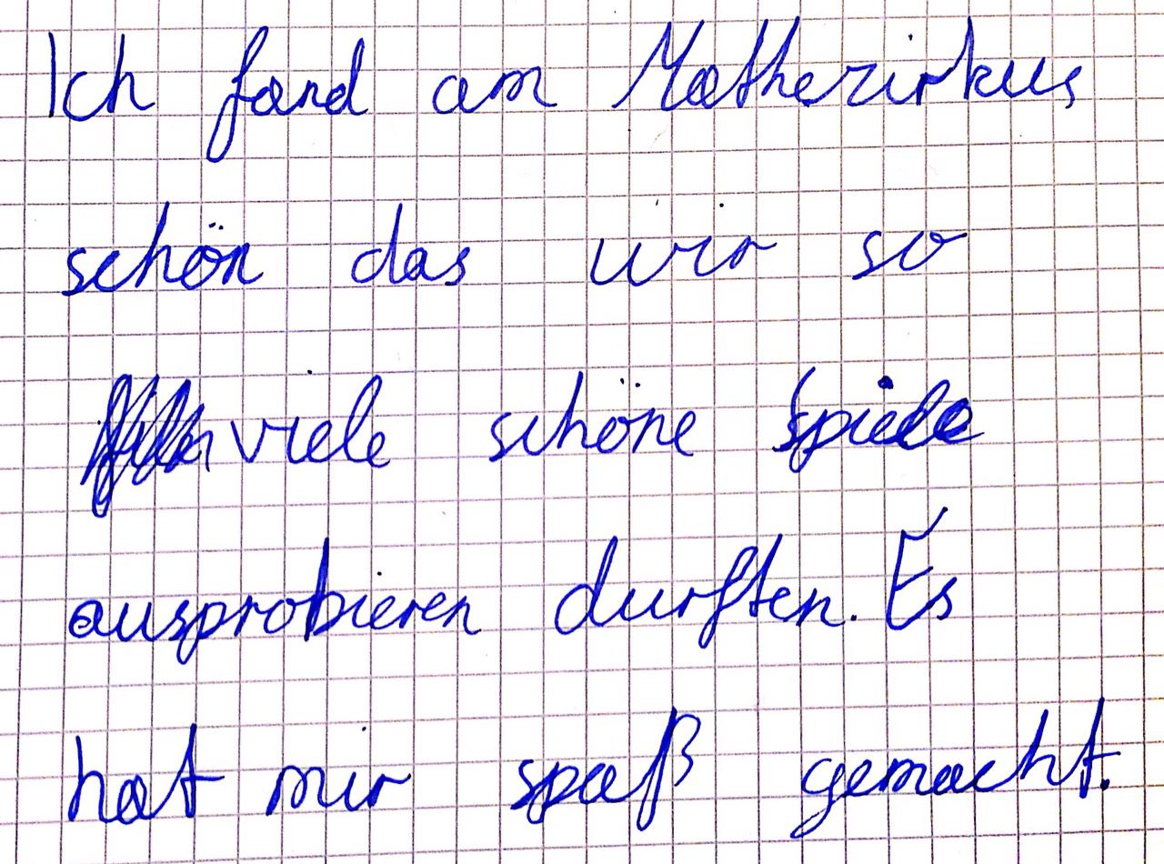 Am Ende der Doppelstunde wird für manche die Zeit ein wenig knapp, auch die letzten Aufgaben noch abzuschließen, weil sie kaum bemerkt haben, wie schnell zwei abwechslungsreiche, praktische Stunden voller Mathematik abgelaufen sind.