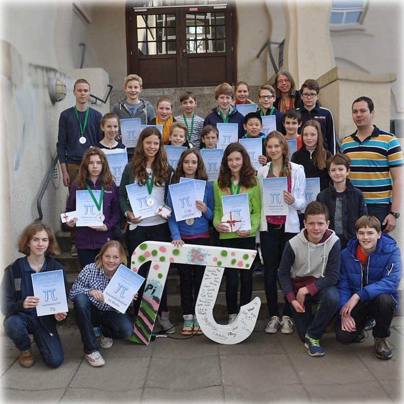 Ein weiterer Preis wurde für das beste Klassen-Pi ausgeschrieben. Alle Klassen waren aufgerufen, ein großes Pi für ihre Klassen zu basteln, um den Wettbewerb auch sinnlich anschaubar werden zu lassen. Die Klasse 7c überzeugte die Jury mit ihrem aufwändigen Pi.