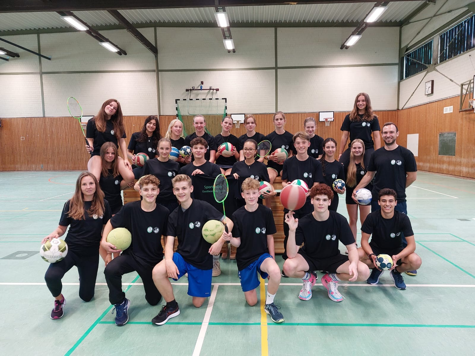 Die Sporthelferausbildung richtete sich im letzten Jahr primär an die Jahrgangstufe 9, wobei auch jüngere interessierte Schülerinnen und Schüler dabei waren. Die Ausbildung wird in Form einer AG durchgeführt und beinhaltet viele praxisorientierte Einheiten direkt im