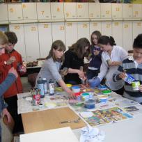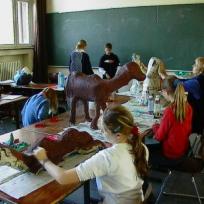 Wir malen, zeichnen, drucken, plastizieren, bauen, basteln, schneiden, schnitzen, bohren, hämmern, sägen, montieren, experimentieren, formen, kleben, färben, filmen, schöpfen, stempeln, sticken, skizzieren, entwerfen, tuschen, schraffieren, pinseln, stricheln, schattieren, lackieren, porträtieren, gestalten, bemalen, entwerfen, radieren, spielen, prägen, arrangieren, konstruieren, modellieren...