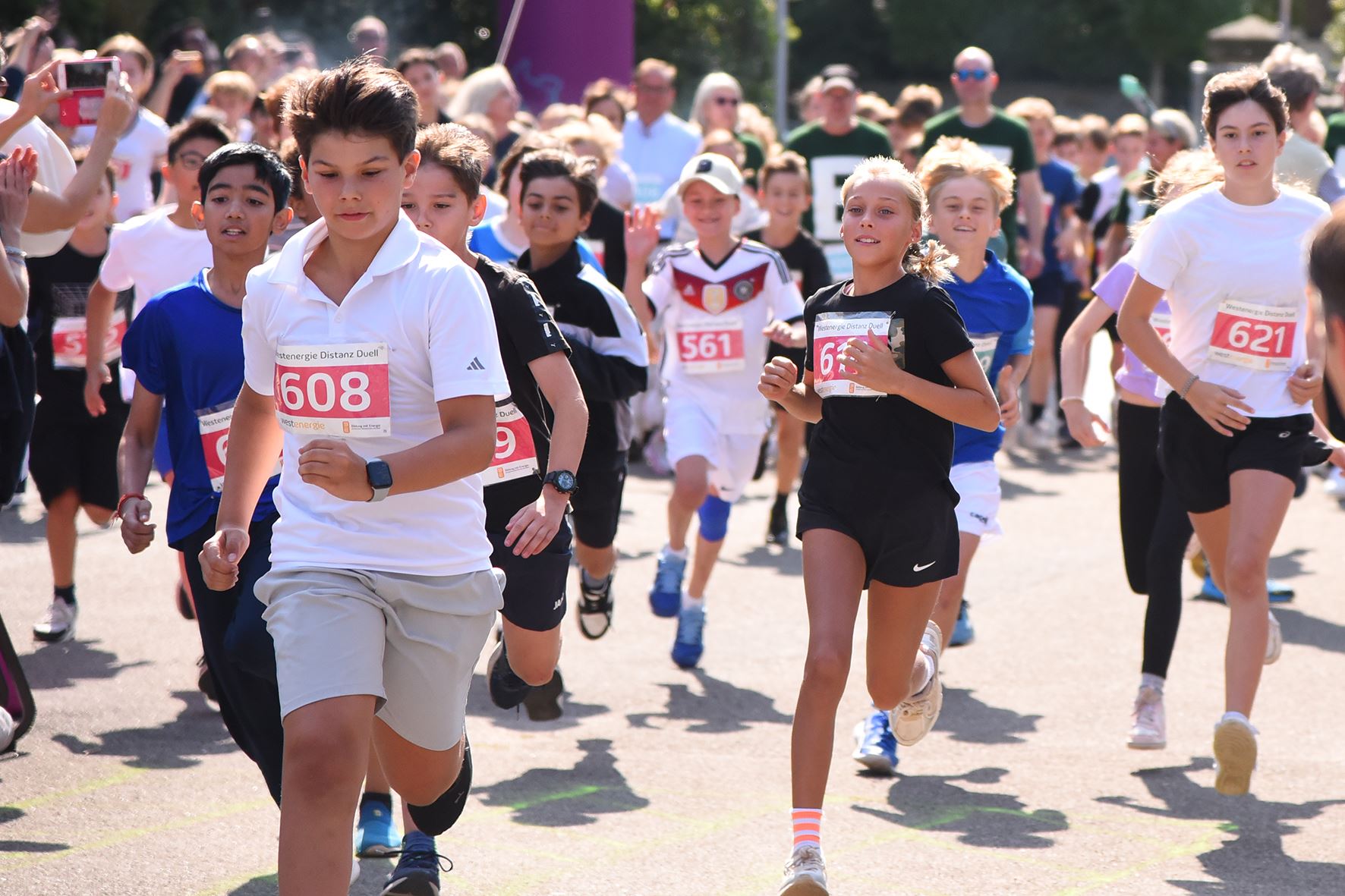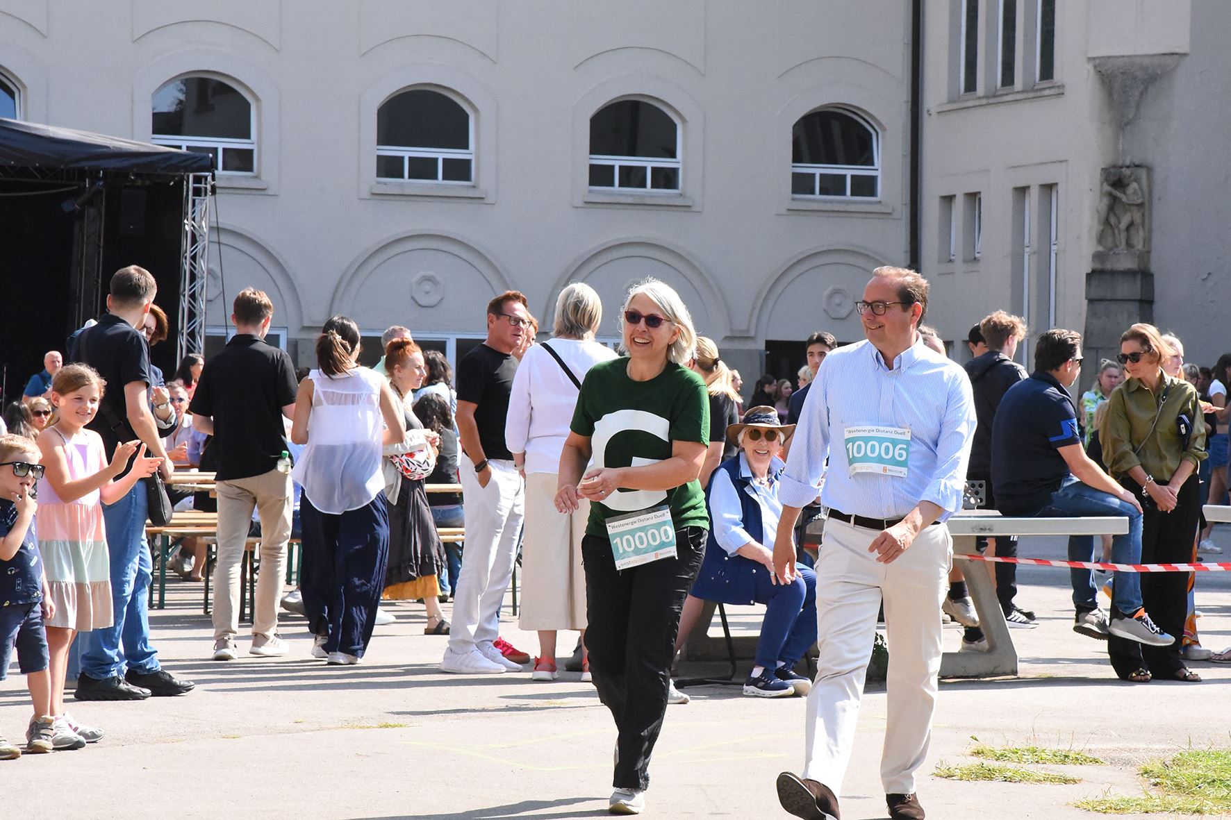 Während des gesamten Schulfests über kam es zu einem Wechsel des Bühnenprogramms und dem Programm rund um den Start und Zieleinlauf des „Westenergie Distanz Duells“. Dieser befand sich in der Nähe der Tischtennisplatten auf dem Schulhof. Der gesamte Lauf wurde großartig durch das Westenergie-Team moderiert.