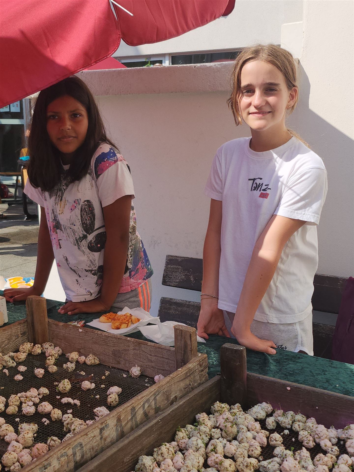 Für das leibliche Wohl war durch diverse Verpflegungsstände gesorgt worden. Im Bistro hatten die Eltern unserer Schülerinnen und Schüler ein großes Buffet aufgebaut, mit dem internationale Gerichte angeboten wurden. In der historischen Turnhalle, die heute als Bistro genutzt wird, konnte sich auch das neu eröffnete „Manu’s Bistro“ einer großen Öffentlichkeit präsentieren.