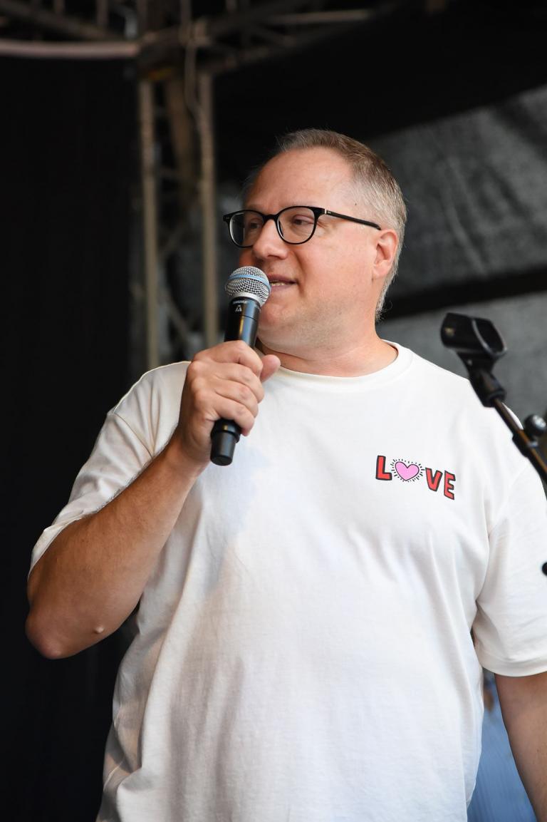 Pünktlich um 11 Uhr konnte Frau Dr. Haas bei strahlendem Sonnenschein das Schulfest eröffnen. Unser Schuldezernent Stefan Uhlmann hielt anschließend eine viel beachtete Rede, in der er auf die Geschichte und die aktuellen Schwerpunkte der Goetheschule einging.