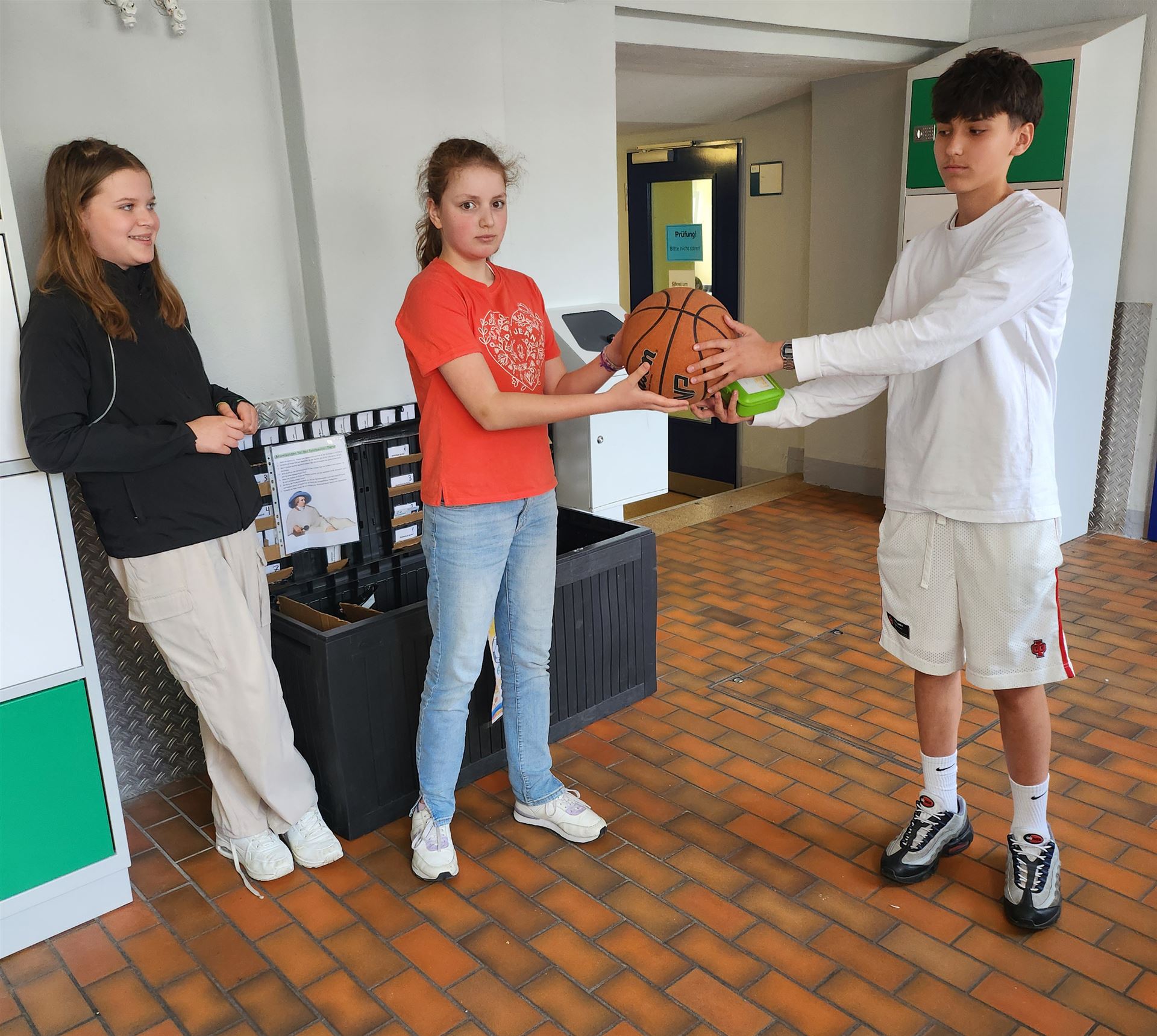 In den großen Pausen steht den Schülerinnen und Schülern der Erprobungsstufe eine Fülle an Spielgeräten zur Verfügung: Softbälle, Springseile, Moonbälle, Tischtennissets, Basketbälle…