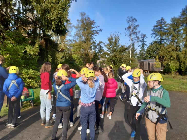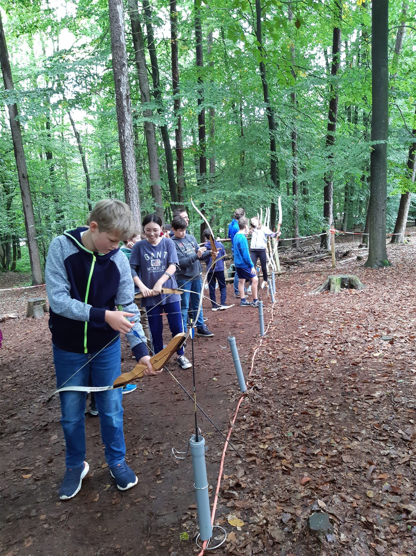 In einem Panabora Park, wo man nicht nur spielen und rumlaufen konnte, hielt sich die Klasse 7c in einem Asiendorf (Zelte) auf dem Gelände auf. Mit ihrem Spieleleiter Niko spielten sie lustige Spiele. Dort haben sie auch mit echten Bögen auf Zielscheiben geschossen, sind mit Sicherung geklettert auf Bäume, gingen auf einen Baumgipfelpfad und sind auf einem Turm gegangen. Am letzten Abend haben sie dann noch gegrillt. Die Klassenfahrt hat allen Spaß gemacht und alle waren froh, dass sie stattfinden konnte trotz Corona!